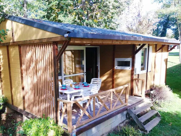 Ce chalet spacieux et confortable de 35 m² est parfait pour les familles, grâce à ses 3 chambres, dont une spécialement pensée pour les enfants avec ses lits superposés . Son grand espace de vie, équipé d’une TV, et sa cuisine séparée en font un lieu chaleureux et pratique pour vos vacances. La terrasse couverte vous invite à profiter pleinement de l’extérieur, en toute saison.