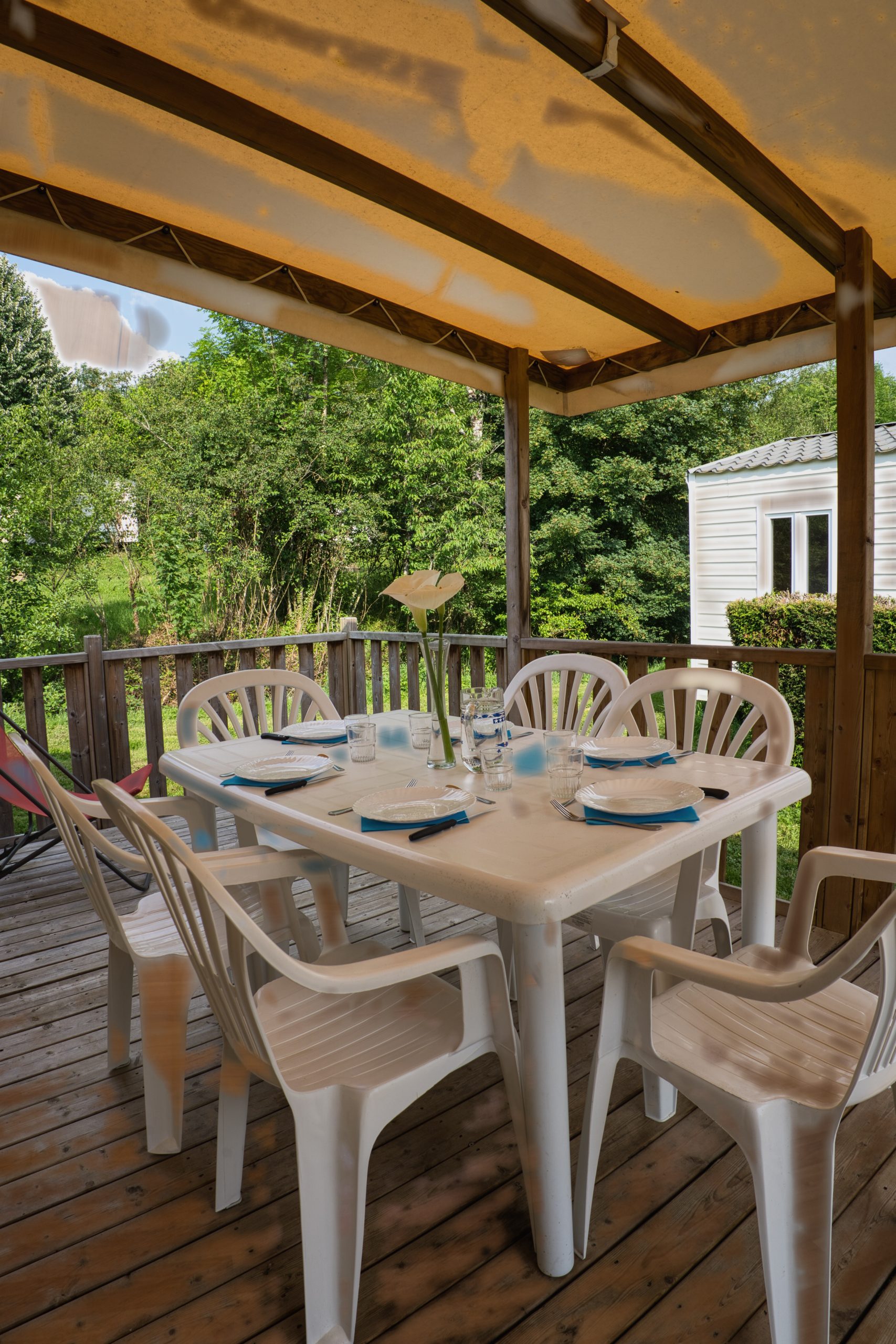 Mobil-home Grand Confort Climatisé de 31 m² avec terrasse couverte