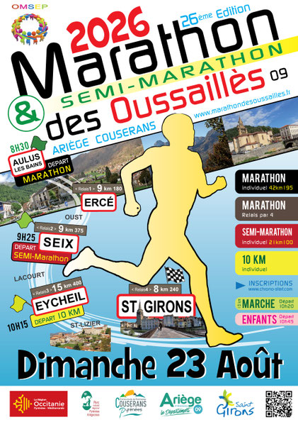 Op 23 augustus 2026 begint de marathon in Aulus-les-Bains, de halve marathon in Seix. De finish is in Saint-Girons, en het profiel van 95% afdaling is ideaal voor snelle tijden.