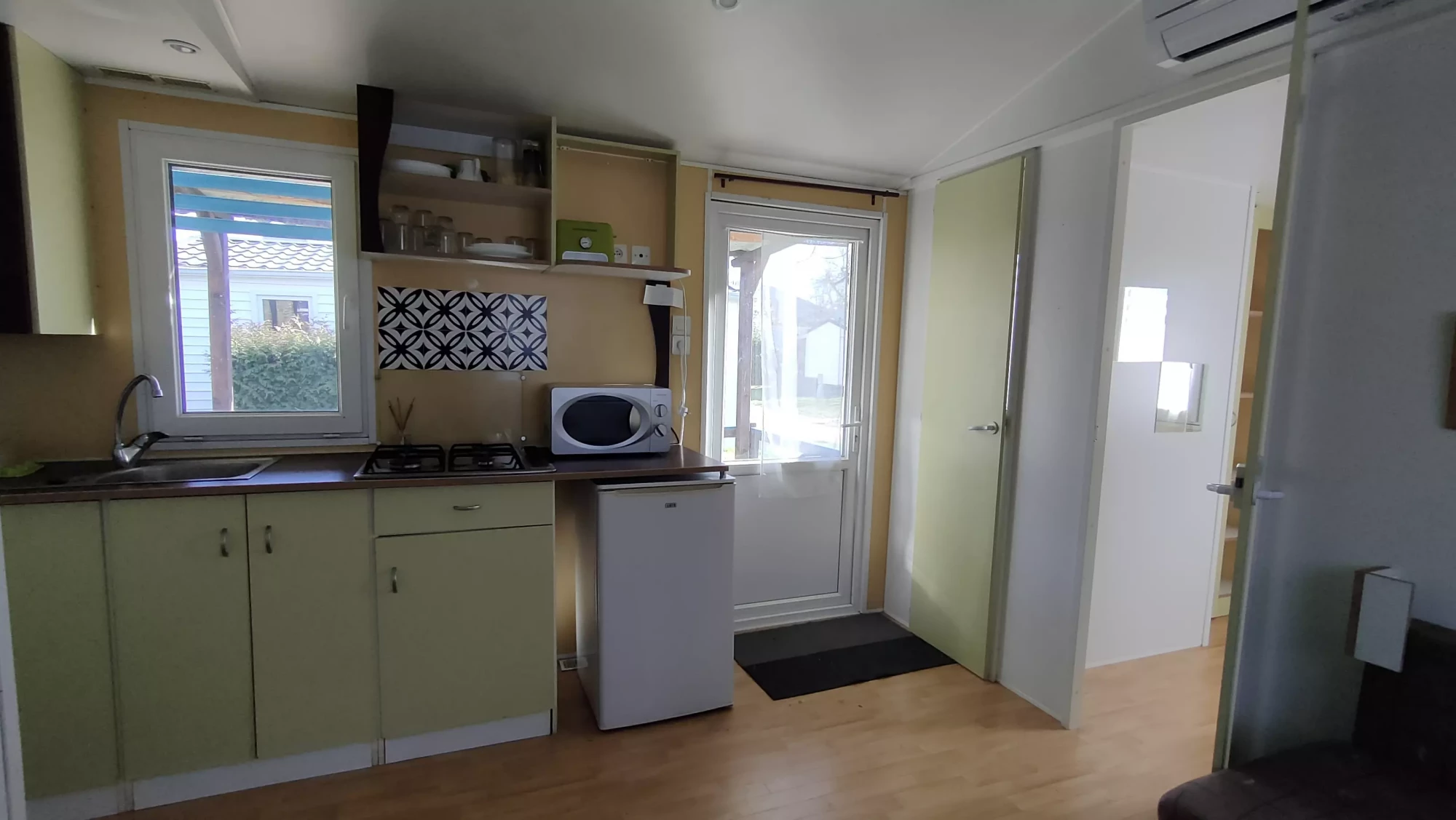 Mobil Home O’Hara CLIMATISE de 26 m2 (année 2001) avec terrasse couverte, sur une parcelle d’environ 100 m2.